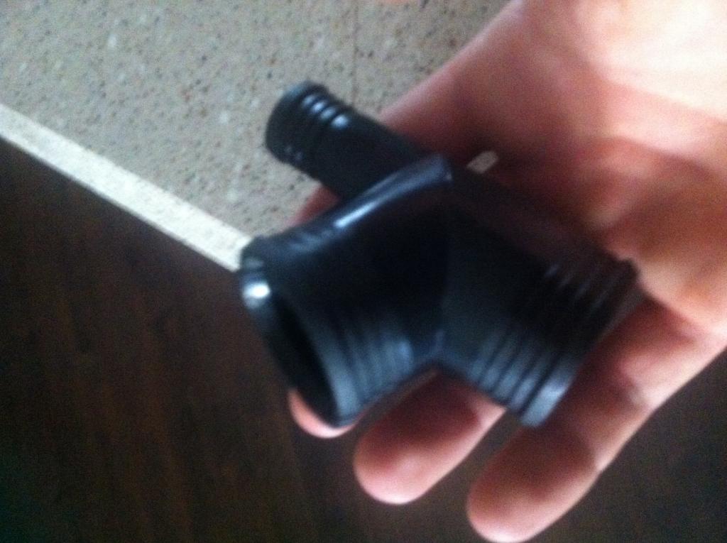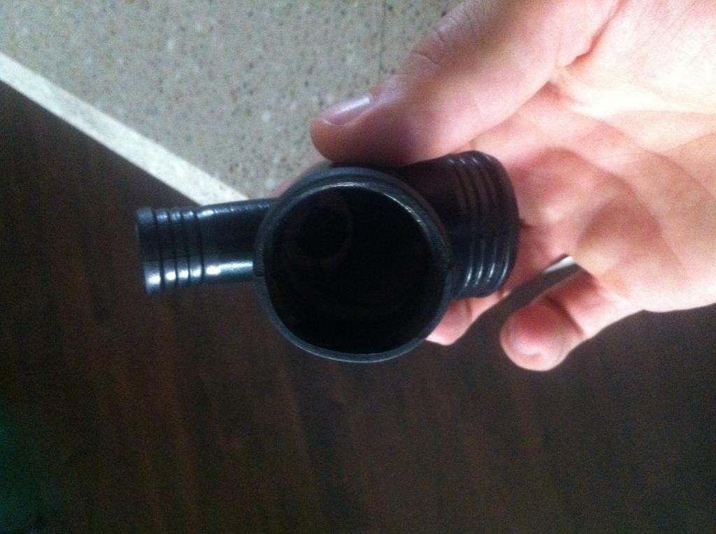Now, back at home with proper tools in hands, I've been unsuccessful in keeping the lower hose from leaking. Upon further inspection, I've found the two fittings to be quite warped and of particularly bad design. I started suspecting that this was a hack job. I should mention that the motor is a donor from a Disco.