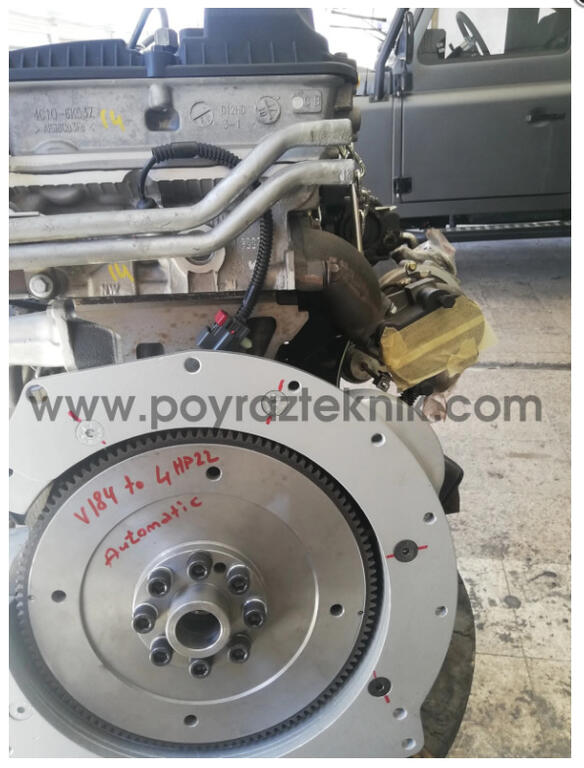 Replacement of the manual diesel 2.5 engine in the 1988 model Land Rover Defender. Adaptation of the mechanical V184 engine and the mechanical ZF4HP22 automatic transmission.