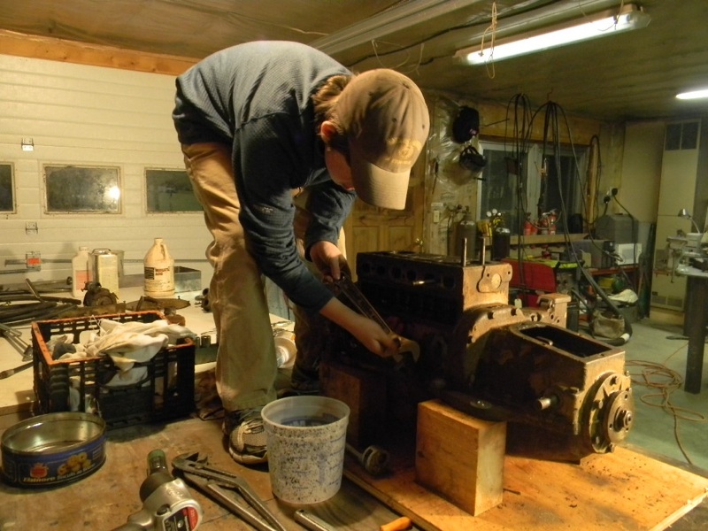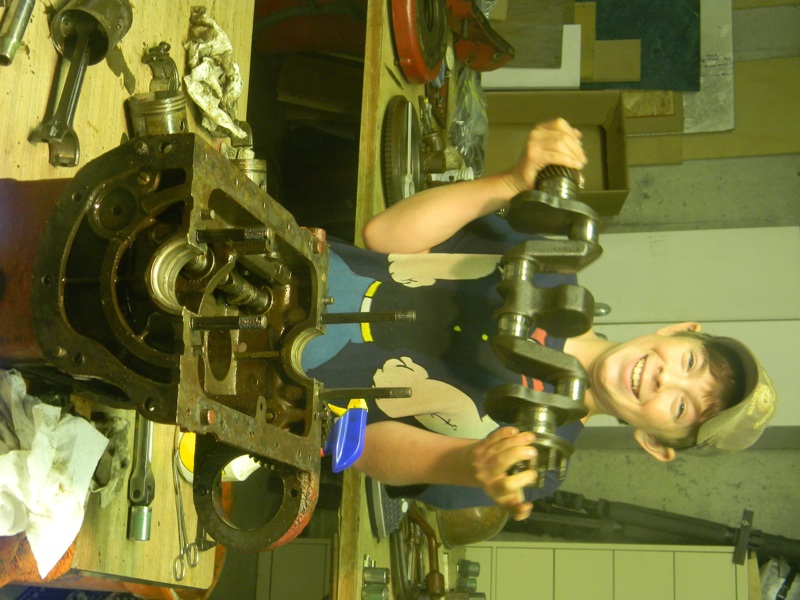 The attached photo is E working on an overhaul of an Atomic 4 - he bought a 32' sailboat on craigslist for $1.00. Another story....