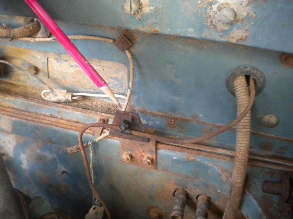 It seemed a cleaner routing to be down the firewall, across the plug side of the block, and then into the head. This bracket is close to the coil, which is not installed yet.