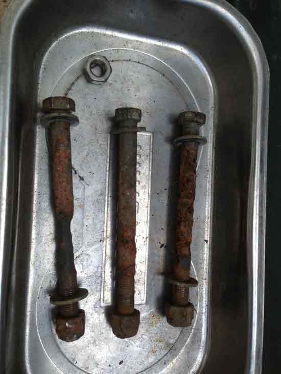 The bolts came out easy on the left side above, but the right side had to be ground out. And this is what came out.