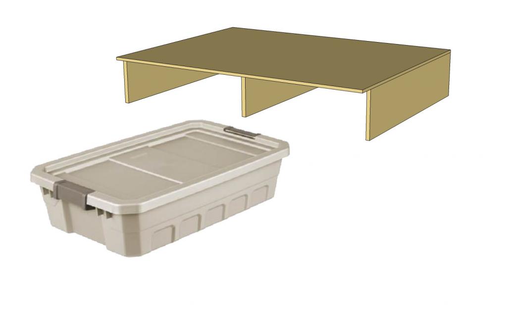 That's how I did mine too, a plywood top and sides and containers underneath. I built it to be the same height as the side bench seats and threw a dog bed on top. Perfect for critters and camping gear! [ATTACH=CONFIG]9548[/ATTACH]