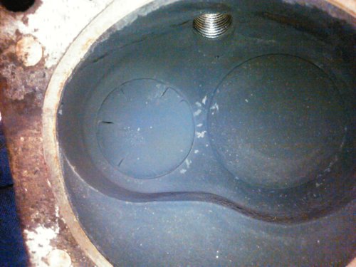 As requested, pictures of the cylinder head. First is #2 which looks great along with the slight impression of the washer in the carbon.