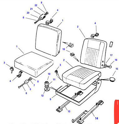 With the recent spat of nasty weather here in Kentucky, I've decided to get my '73 88" RHD back on the road. I'm looking for the following parts; adjustable trays (9) and tracks (13 & 14) for both driver and passenger seat. Thanks!