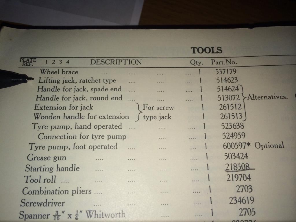 Below is an excerpt from a Series parts book that suggests two types of jacks.