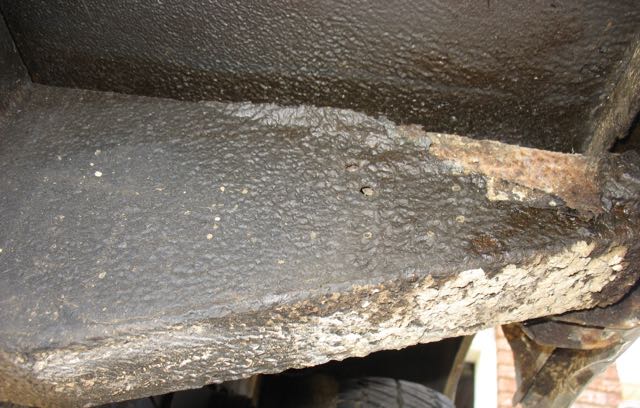 I attach a couple of pics to show the undercoating and a couple of spots where the undercoating is peeling off revealing some rust underneath.