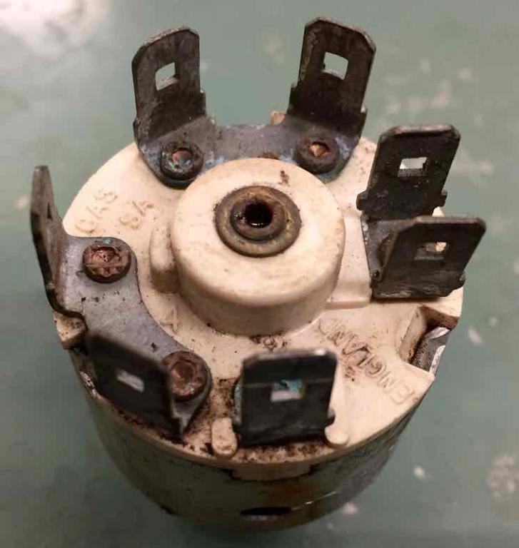 While rewiring for 4 way flashers yesterday I had a chance to check out the ignition switch. Mine is also a '71 IIA 88. If you look closely at the back of your ignition switch you'll see that the terminals are labeled 1 through 4. Position #1, the double terminal at the top in this photo is 12v in. #2, as you turn the key clockwise, is ignition on, +12v to your coil. #3, the single terminal at the bottom is the momentary switched position, +12v to your starter solenoid. Position #4, the double terminal, turning the key counterclockwise from the off position, is the auxiliary power position. At one point I did manage to get the ignition switch wired like yours. A few minutes with the Ohm meter sorted things out.Comment