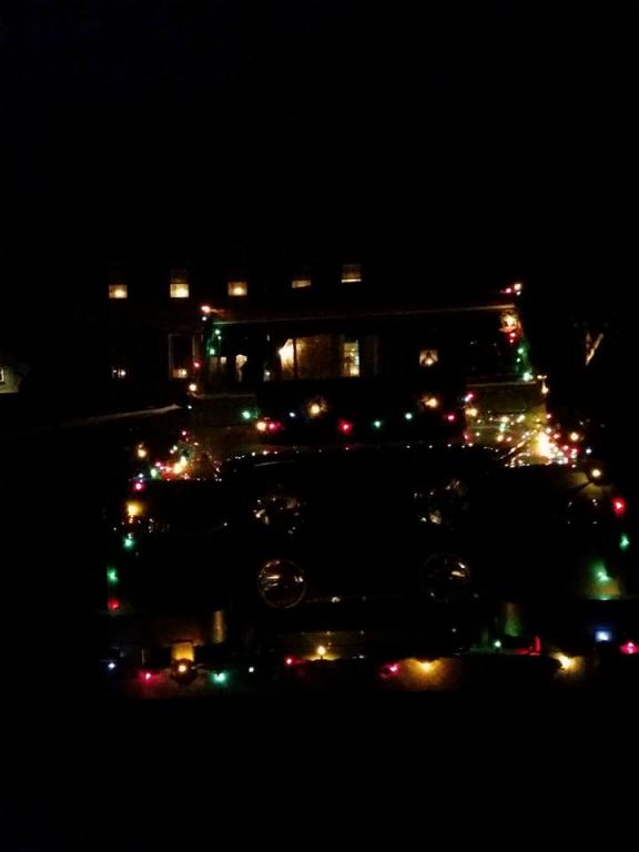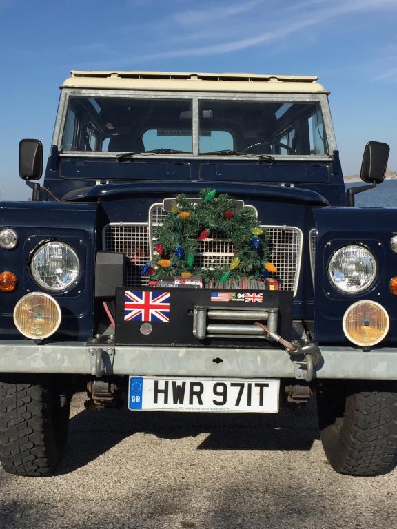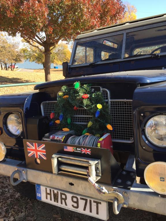 Where are the pics of the traditional Christmas Holiday Wreath on front of the Landrover?