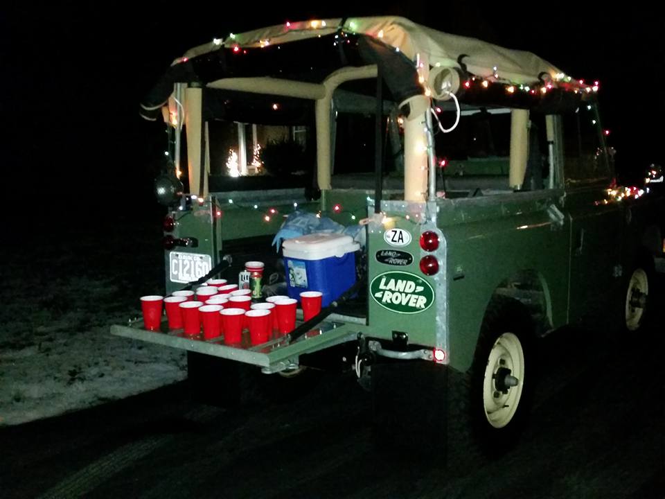 Waiting patiently with "refreshments" for friends from our local running club doing their annual Christmas Lights run. Oh the versatility of a Land Rover