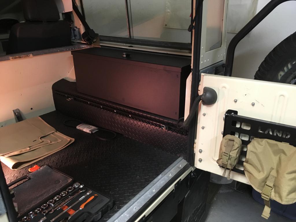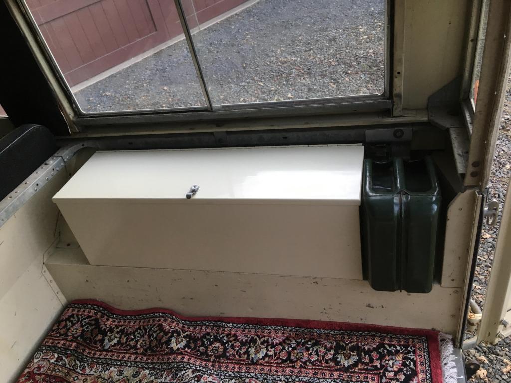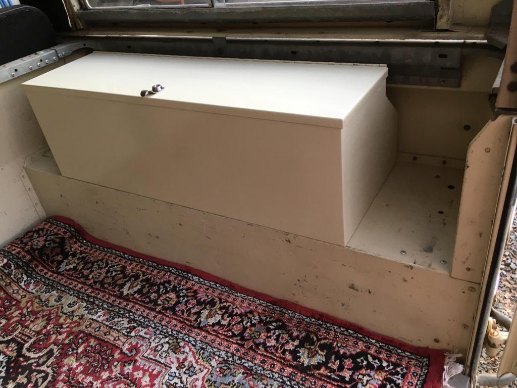 I’m going to replace the bench seats in the tub of my 88” Series III. Just don’t like the look of the things and — more to the point — I can imagine no situation in which someone will be riding around the back. I’d like to replace them with some sort of simple storage/tool box. Probably one one either side of the tub. Nothing fancy, just a simple box I can padlock. Obviously I’ll want them bolted to the tub but the need to be able to remove easily.