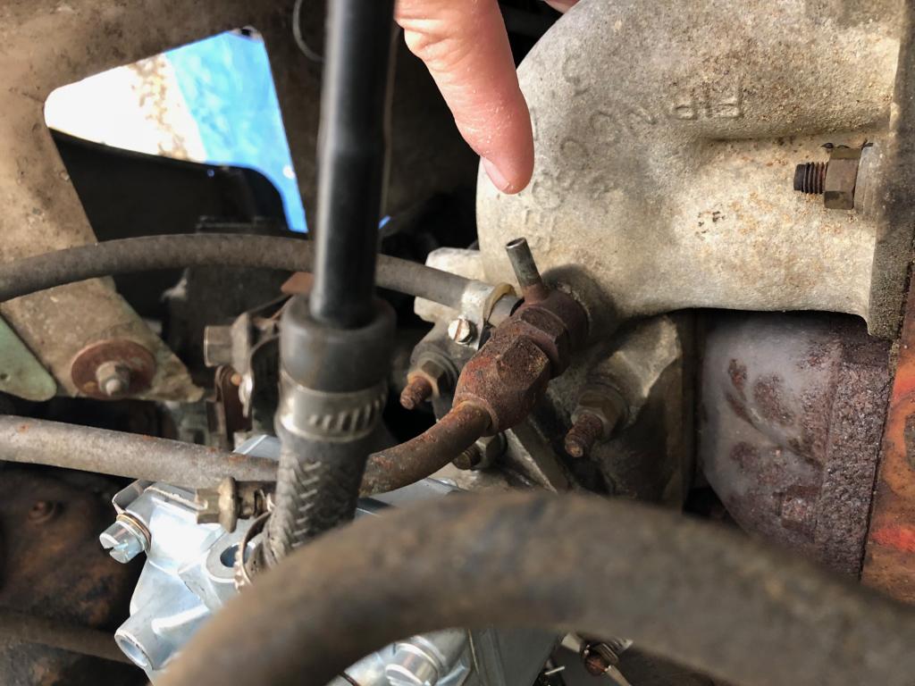 It looks like that same fitting has another port that runs to something else (I see a hose), so you should just blank off the open port. You will notice the engine runs WAY better and your brakes work better.1968 Series IIa