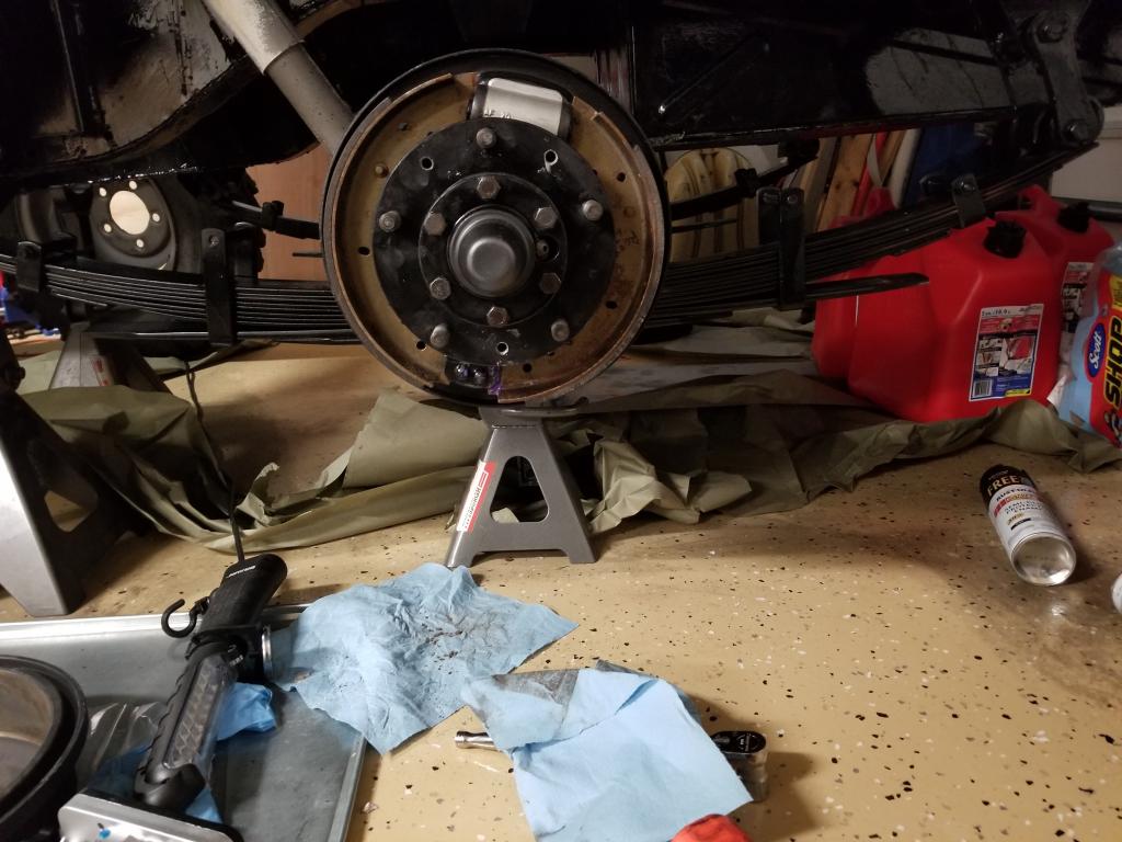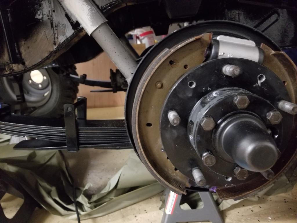 When I bought the vehicle the left rear wheel was locked up tight just like now so I removed the drum and took off the same pads so I could have it moved/ towed. It has been in restoration mode since.