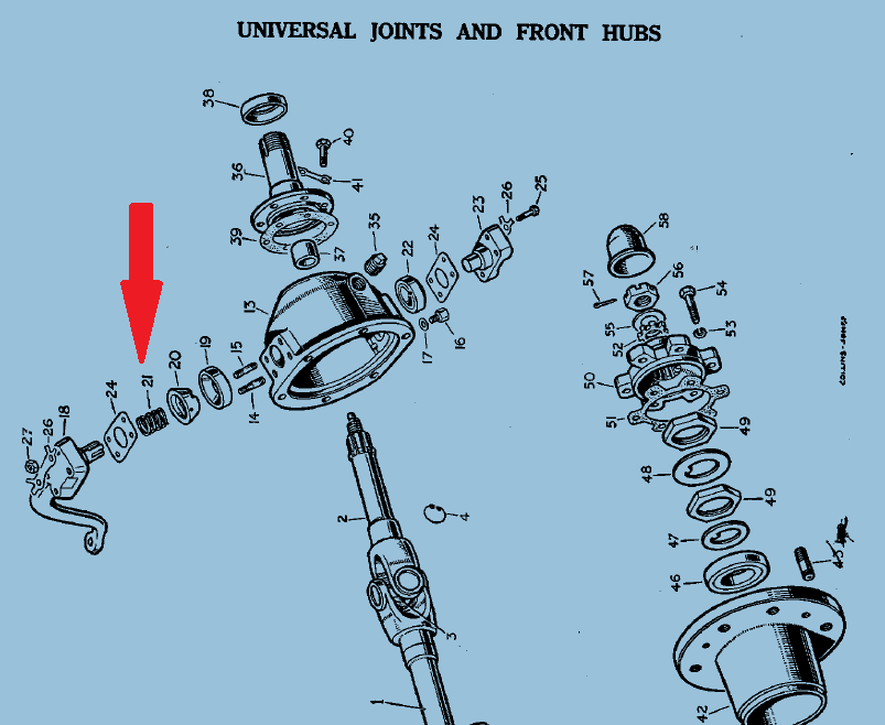 2) In the Series III parts manual there is reference to a "Spring for cone bearing" directly underneath the shims for the steering arm, is this actually a part (pic of parts manual attached)? It is not listed on the Roversnorth diagram on the same page as above.