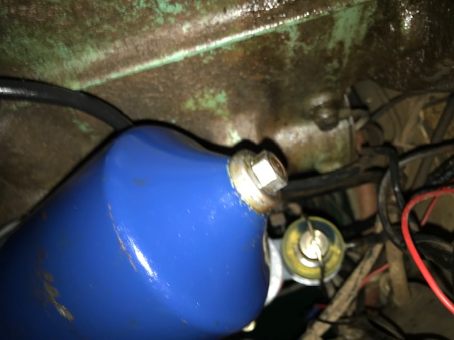 On my '73 Ser III 88" there is a solid hydraulic line from the M/C that goes along the back of the firewall over to the other side of the truck, then down to a bracket fixed to the inner fender. From there a flex line goes down to a bracket held to the block by two 5/16" bolts (½" head). That bracket is bolted to the block right behind the fuel pump sediment bowl. From that bracket it appears that another solid line runs above the bellhousing to the Slave Cyl on the other side. Kind of a convoluted path, but it works. Can barely see the bracket on the photo above
