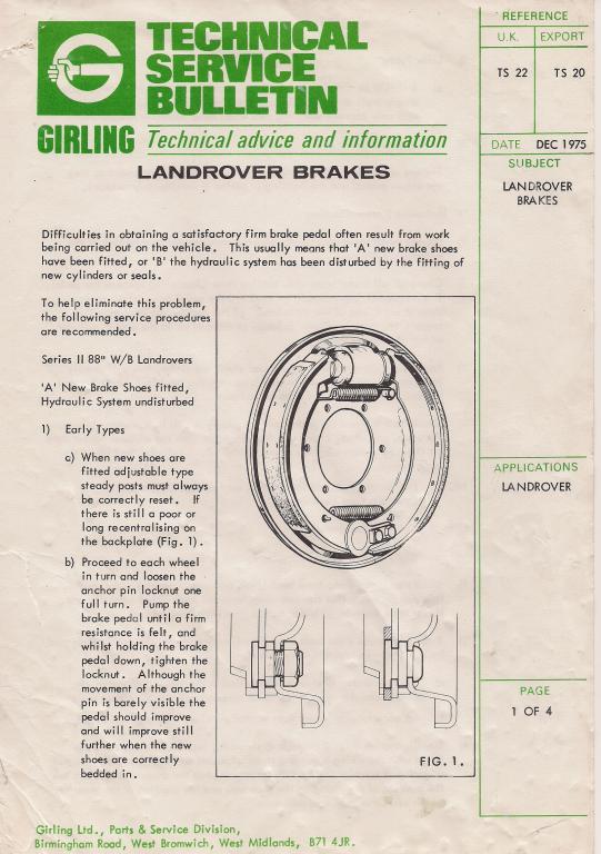 Hi-Son and I purchased a Series III, 88 inch, with bad brakes. It has 10 inch drums all around. Pedal goes almost to floor, but when pumped up, will stay up until you release it, then pedal next time will go to the floor again. Master Cylinder has been replaced as well as all four wheel cylinders, shoes and springs. All bleeding good and adjusted shoes, no leaking and flex hoses good, drums look new. We used master cylinder PLC 753, and two sets of PLB 535 and PLB 536 wheel cylinders. All parts removed looked like what we put on, all four wheels look the same, with one adjuster per wheel. The car was refurbished 7 years ago and looks like they used what ever parts they had. The car's paper work said it is 1982, but don't think so. One question, what is different in the wheel cylinders PLB537 and PLB538 to the 535 and 536 that we used? Any idea on why the paddle goes to the floor? We have run out of things to try, and any help would be greatly appreciated.