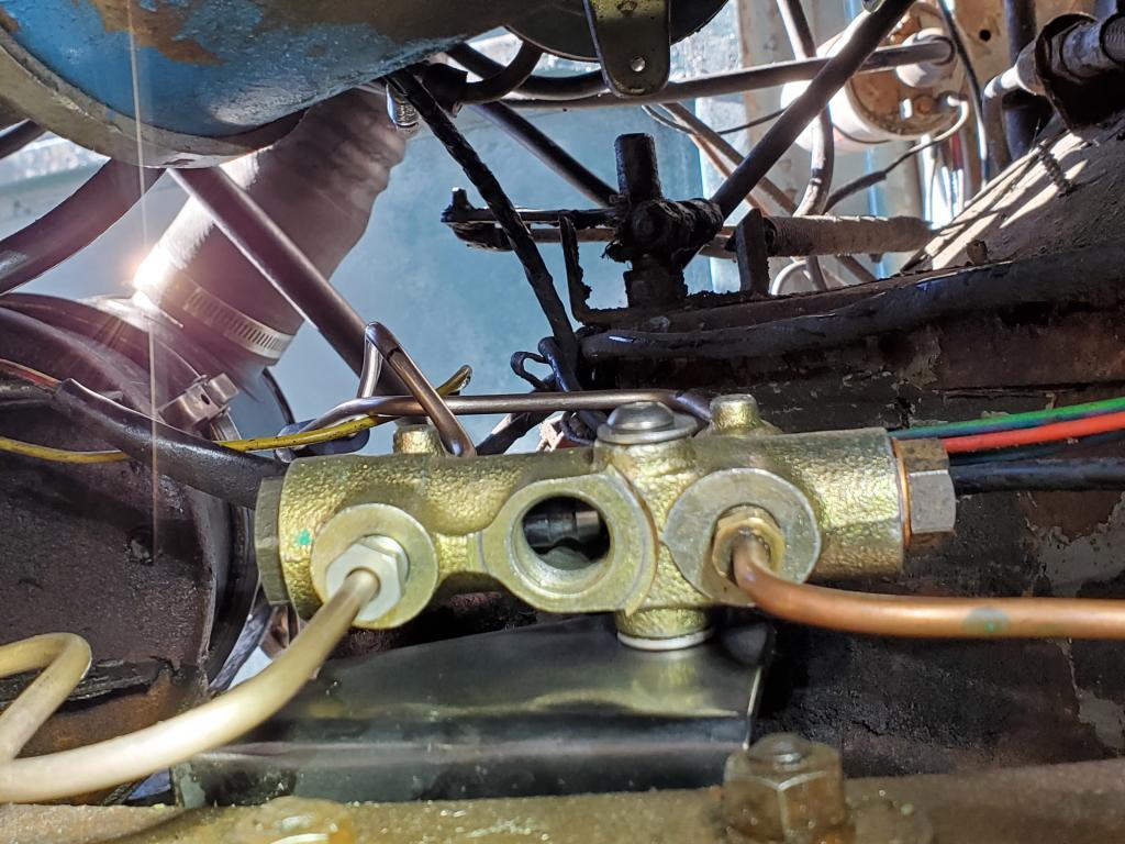 If you have existing lines that don't reach right...or they were flipped coming out an old Shuttle valve...then you might be forced to plumb a front to back flip with the lines from the MC to the Shuttle valve. I had to do that (see pic). Again, just identify your MC type, and then visually follow the lines...ensuring the lines eventually going to the front brakes get the larger volume circuit.