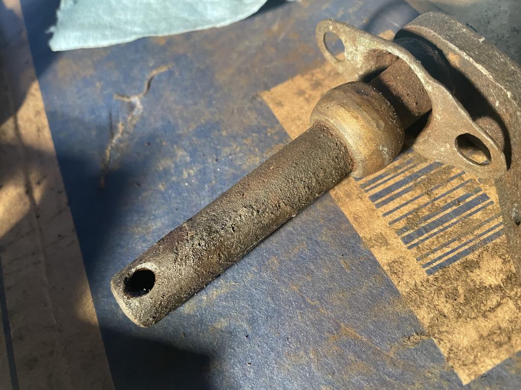 Hello. I have a 1969 2A 88". Question on the bracket that mounts to the transmission bell housing and supports the clutch slave cylinder rand the lever arm to actuate the clutch throw out bearing. Two questions. First my bracket has a bend and break in the area where the pivot assembly mounts. Is this break and bend in the bracket normal? I have searched for pictures online for this bracket and nothing shows a detail picture. Below are a couple of pictures. I assume the break and bend are not standard. Second question is for the spherical bush that rides inside a housing to transfer the pivot motion. How do I remove the old spherical bush? Just carefully cut it off or apply heat and drift it of the shaft? Assembling the new one any suggestions? I assume applying heat is one option. Thanks, Tom