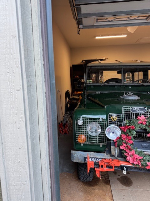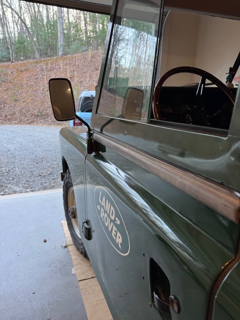 Well, my '73 Series III has nice large door hinge mounted mirrors. The left one is adjusted so I can see just outboard of the side of the truck, the right one is adjusted to point downward more, and pointed so I can use it to back into my garage with just a couple of inches of clearance with the door opening. Then I can pretty well hug the garage wall on the right side and leave lots of room for both the landy and the second vehicle to fully open the driver's doors.