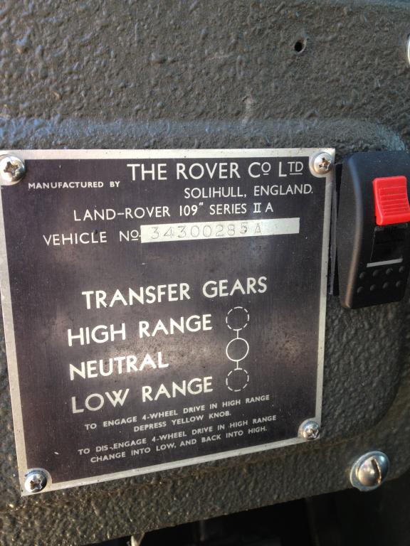 I have 34300079A-the truck is original with a couple of up grades-parabolics and newer brake system and a roverdrive. Still have the 2.6 in her and getting some engine work done now- has some burnt exhaust valves. the truck has been driving around since i found her 8 years ago. The original list of all the 109's NADA ever made has 34300239 sold to churchill in 1966- my father ordered that truck and we picked it up in England when i was just a kid. if anyone knows where 239 is please let me know.