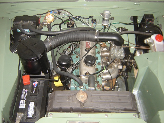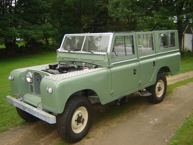 The drive train is a great combo that has proven very reliable. The engine is a '97 vortec 5.7 backed up with a np435 granny 4 speed. Adapted to the stock series transfer case via an Advance Adapters adapter, 50-9000. I Also added power steering. The axles are stock series housings, with 24 spline shafts and chromoly cvs in the front. ARB's and disc brakes. The ring and pinion ratio is 3.54. Remember that the transfer is under driven. So I really have a 4.03 final drive. 4.70's = 5.35 final drive. With my low ratio transmission and 2.88 "b" suffix gears the rover crawls and hauls!! It's been s great car. Old looks with modern performance.