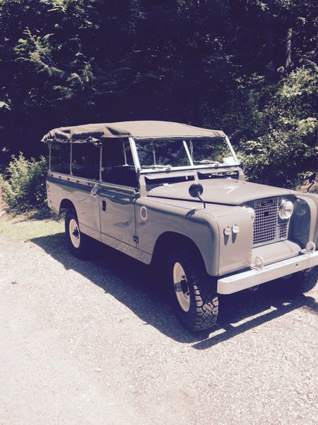 My '66 IIa is the same green color and I'm torn between the sand and black soft top. My hard top is limestone but I'm not sure which direction to go with the soft top. I have black wheels as well.