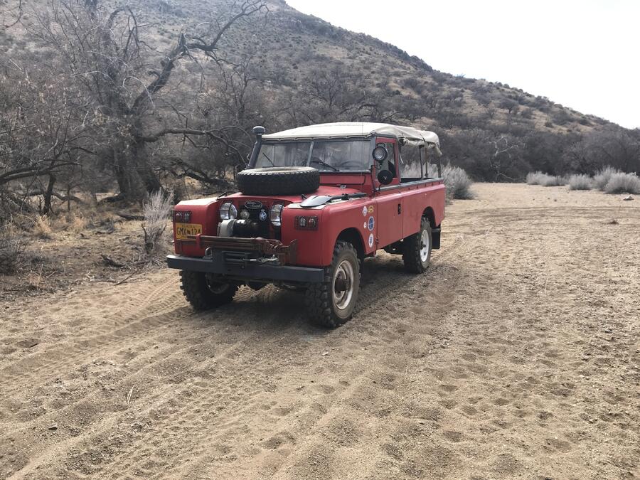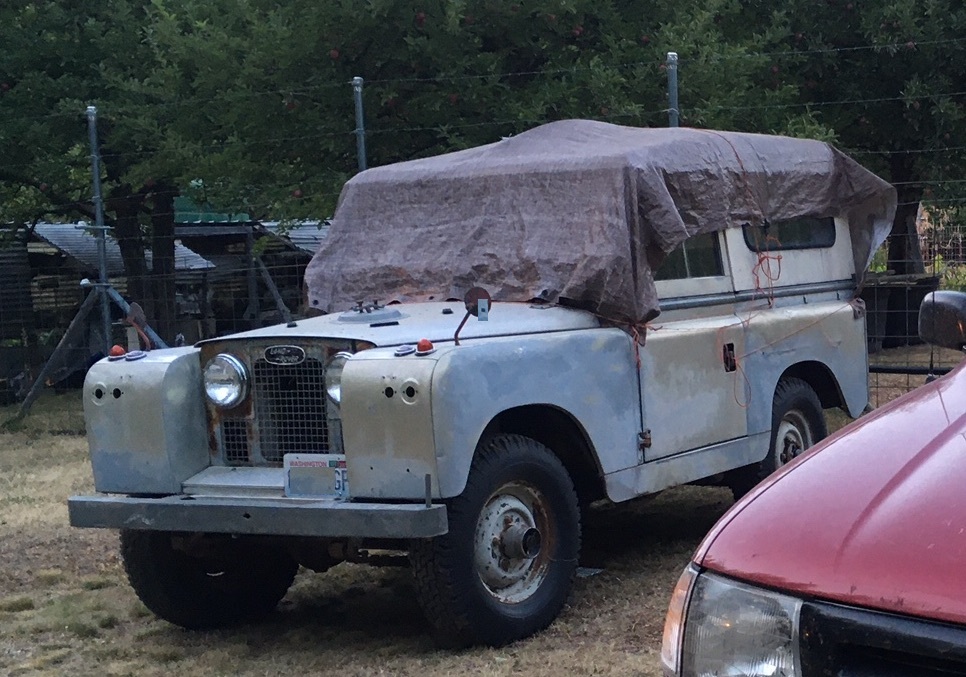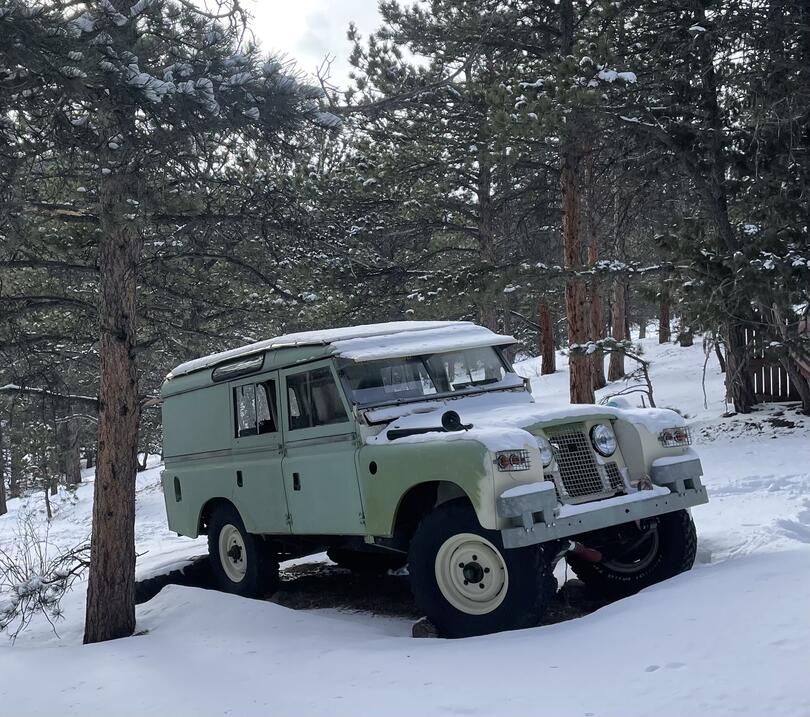 Here's my two land rovers. 1967 109, currently missing the engine and a few other parts. In it's previous life it was owned by Ron Pederson, the owner of an Alpha/Rover shop in Nederland, CO, and this land rover was named Grokolina, and has "reunite gondwanaland" stickers on it. He had taken out the worn out 6 cylinder in prep for doing a V8 swap (and cut out the front crossmember too, not sure why). He never did the swap. I currently have an OM617/SM465/Dana18 setup to put in it, but also haven't gotten that done yet. Ended up moving to WA to help the folks out on the farm as they age, and haven't gotten the land rover transported up here yet. Being a Colorado truck, it has no rust. And no, the wings and grille aren't busted up, just they were all removed for the engine work, and they're only held on by like one or two bolts in that picture.