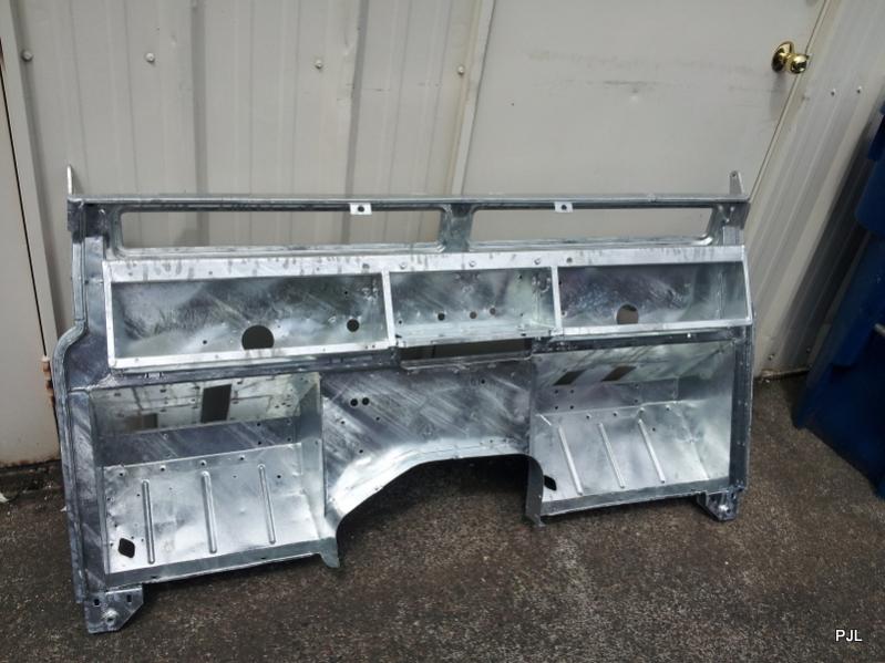 The freshly galvanized bulkhead and core support for my 1959 Series II 88 Pickup were installed last Friday. Neither piece required any rust repair! A new wiring harness on the way from England--but not 'til Wednesday at the earliest since the country is shut down for the Queen's Diamond Jubilee...
