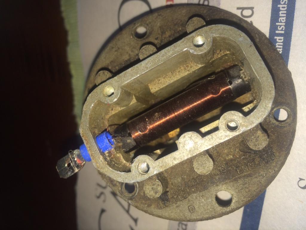Resurrected 24V. fuel sender. Drilled out rivet holding spade terminal, listed out wire wound resistor, unwound 2 turns, reinserted resistor, inserted new spade terminal (swedge fit), and re-soldered.