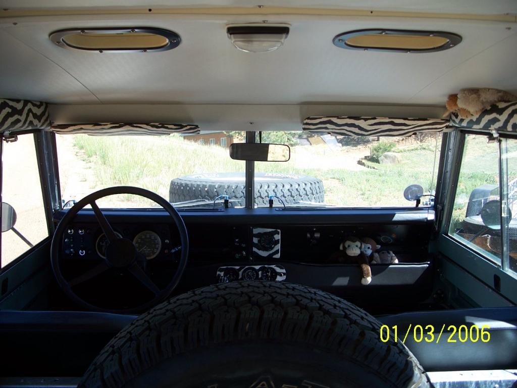 -All upholstery redone in black (kick and door panels, middle panels, note that the sunvisors, top rails and rear door panel was done in zebra for fun. . ...can be easily reversed in less than a day and for $50 of vinyl!)