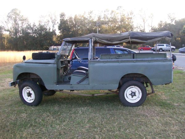I have for sale a 1973 Land Rover Series 3 It has a clear Florida title. It is a right hand drive 109-three door. It has a 2.25L 4 cyclinder that runs great! I'm not sure how many miles it has, the odometer quit working. I've had it for over 2 years and have drove it a couple thousand miles. It is in rough shape, but would make a great project. It is tagged and insured and gets driven daily. The interior is in decent shape. One of the seats has a tear in it. On the dash, only the speedometer works. It is in KpH instead of Mph. I installed an after market temp gauge. The Rover has a banjo steering wheel that is in decent shape. It also has the factory optional steering column ignition instead of an ignition on the dash. The vent has bug screens on them, but the vent knobs are gone off of the openers. The alternator has to be on by a switch on the dash. The blinkers and headlights work. It has running lights but no brake lights. I have a new brake light switch but it is not installed. It also has a hand throttle. the rover is Missing both front doors, The Rover has a diamond plate on the fenders and the running boards/rocker panels. the bulkhead is decent but has a few rough spots, It has a deluxe bonnet with spare rim and tire there is a small military shovel from rovers north mounted on the spare tire, and also a hand crank is mounted to the hood. The Rover will need new tires, the tires on it are very dry rotted. The engine runs great and always has. The plugs, oil, and oil filter have been changed regularly since I've had it. It has a K&N air filter on the carb instead of the oil bath. The original fuel tank was rusted out so it was replaced with a plastic fuel cell. There is a new starter solenoid. Also the mechanical fuel pump quit working so it was replaced with an inline 12v pump. The exhaust has a leak at the manifold. The brakes will need work. The rear brakes do not work and the front wheel cylinders have a slow leak, the master cylinder was replaced about a year ago. It also has an Inline vacuum brake booster mounted in it. The Rover will need to be repainted, it has an ugly textured paint job that has a few layers. Also the front passenger fender has a dent in it. The frame on it is in bad shape. The previous owner put lift shackles front and rear to lift it a little. The rear bumber was rotted out when I got it, so I fabricated a rear bumber out of 3/4 inch plate steel. The 4 wheel drive works great and it is very strong. The rear tub is carpeted black with 3 folding bench seats. The Rover has an old canvas top that is a little rough. But it keeps the rain out. The rear tail gate has been outfitted with a Carter's shovel from Rovers North and old military pick axe. I have an extra windsheild with good glass and oil pan with gasket. The rear tub has a swiveling spot light, but it needs a new bulb. the rover comes with an original shelley screw jack and handle, The Rover is rough but is going to make a great project. I drive it around all the time and it attracts alot of attention. The vehicle is located in Hilliard Florida which is located 25 miles north of jacksonville florida, i will not ship the vehicle, local pickup only, if you have any questions or need pictures of anything, or would like to come out and check out the rover email me anytime, would trade for small car I am wanting 3000 or best offer email me anytime at triumphdaytona2007@yahoo.com