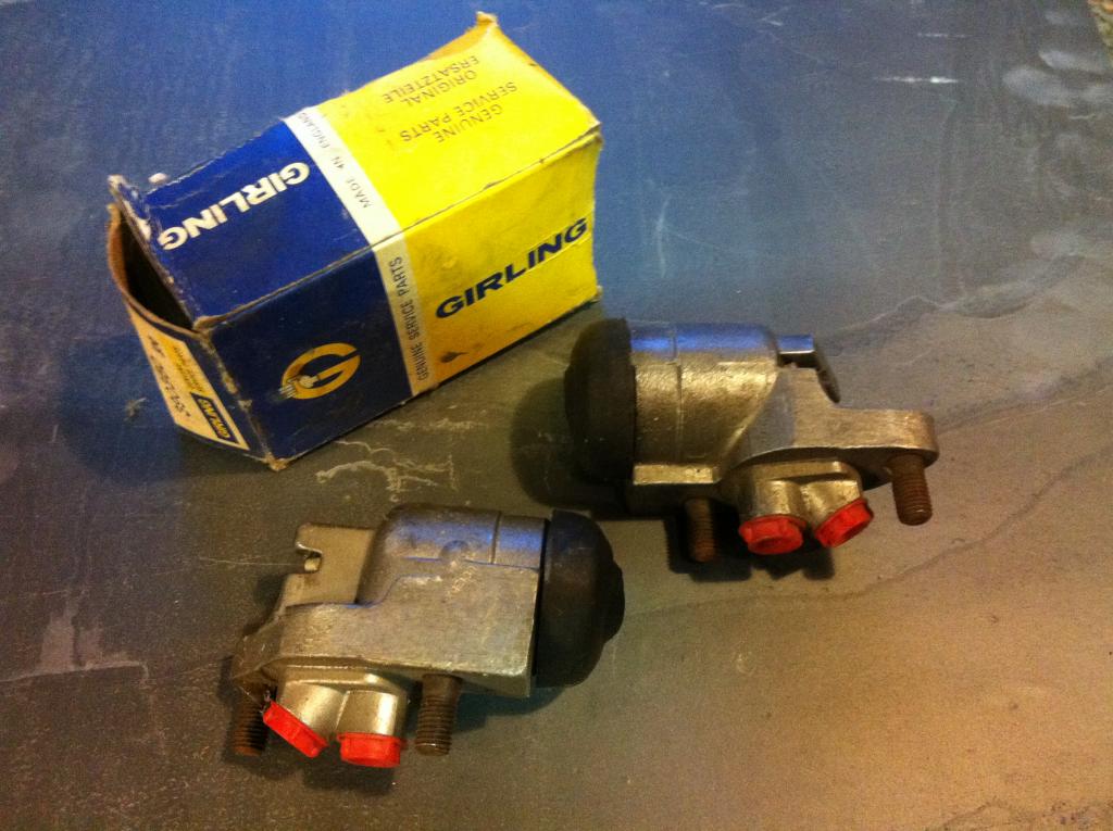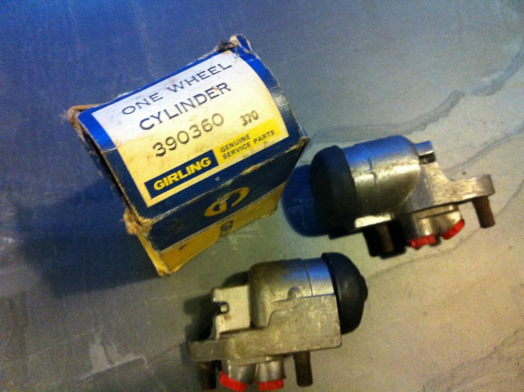 These are new, NIB wheel cylinders, but the rubber probably needs to be replaced or at least tested since they've been sitting a very long while.