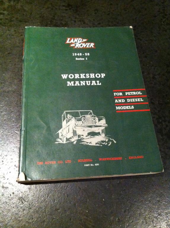 Land-Rover Series 1 1948-1958 Work Shop Manual for petrol & diesel models part #4291 - a little shop worn with grease/oil smudges on the edge and on some pages. One little tear in the cover. Totally intact. Condition 8 out of 10 $35