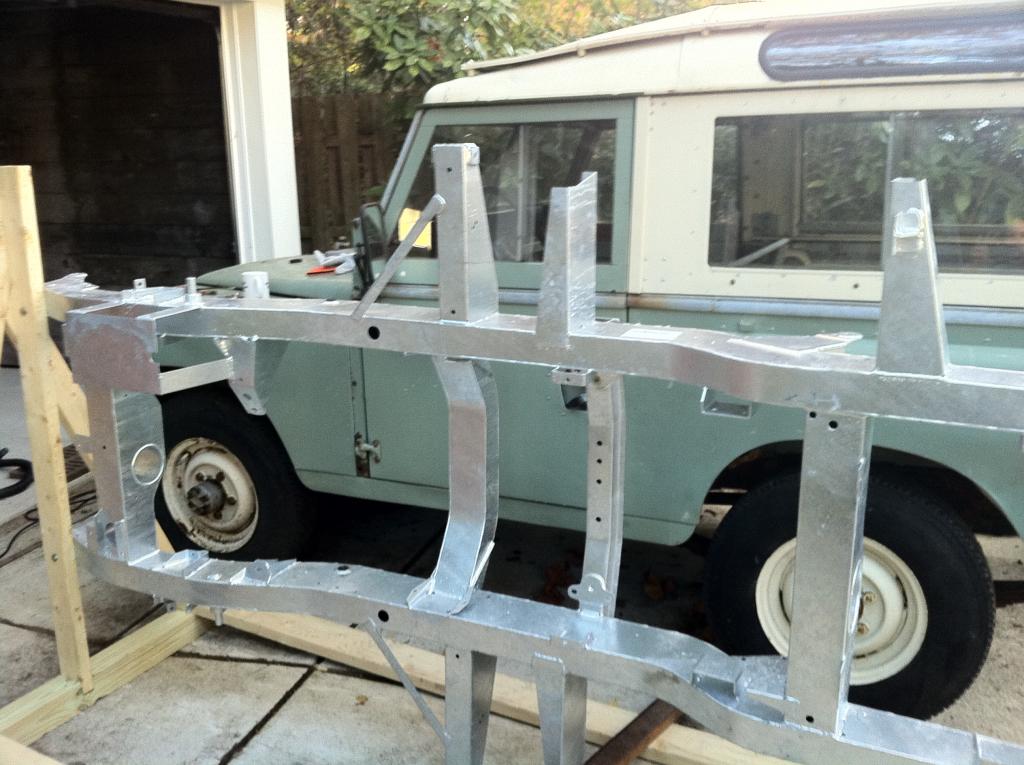 Right now I have the new chassis on the springs, axles, and wheels inside my garage with the Rover in front of the garage door on axle stands waiting for the transfer of parts.