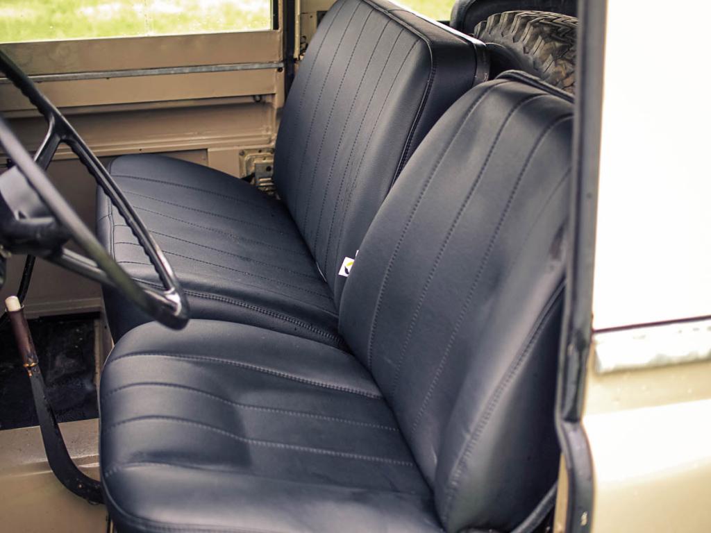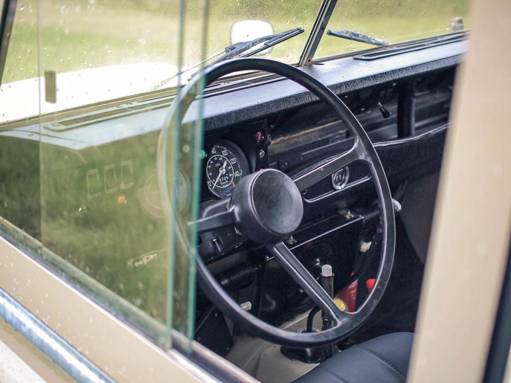 original miles in the care of one owner since new. 2.25L diesel and four speed transmission. Sand paint with limestone roof and wheels over black vinyl. Absolutely no rust. An extremely low mileage and carefully used example of a desirable Series III 88 body style. Largely original, beautifully kept, and never requiring extensive restoration. Recent front seat reupholstery and full standard servicing. Fires instantly and drives perfectly with no smoke. Original jump seat upholstery and dashboard shows very well with no serious damage. All lights and electrics functioning normally. Comes with original paperwork, including the original Bill of Sale, warranty certificate and service guide.