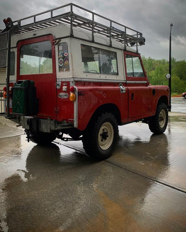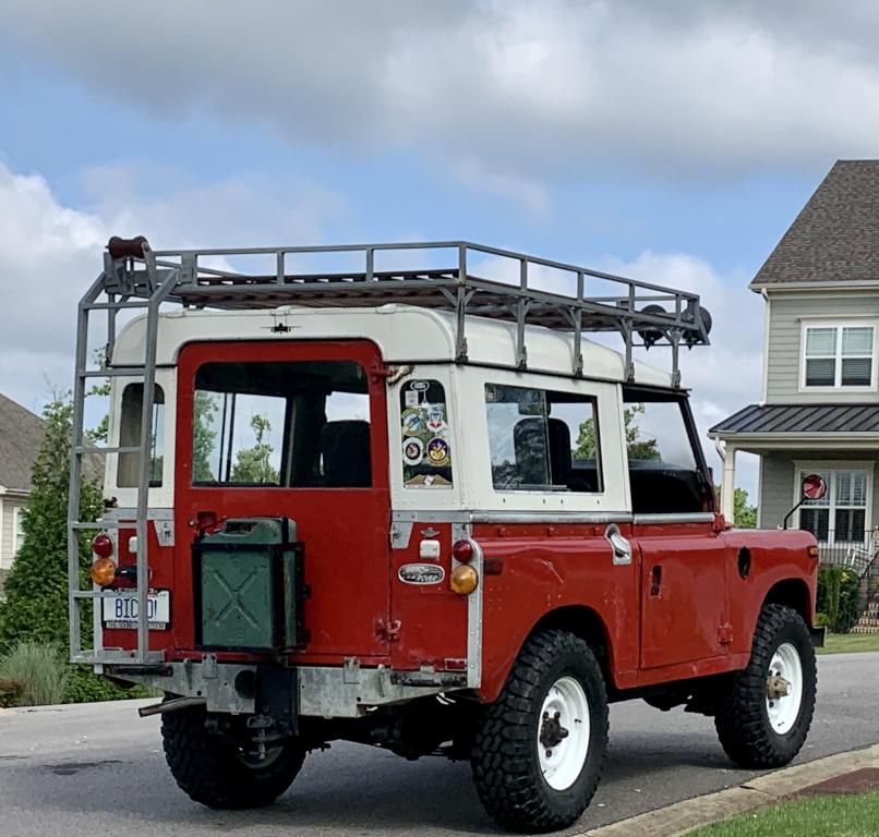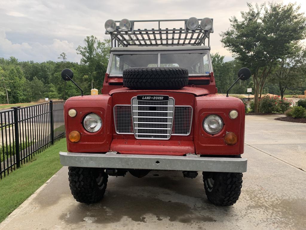 I am considering selling my 1972 Land Rover Series 88”. Engine just blew and is not working and I’m not sure I want to deal with the business of rebuilding it or replacing it. 2.25 petrol. New in the past 8 months: 4 parabolic springs. New Atlantic British exhaust and muffler, new front rotors, and new drum brakes, new replica wolf wheels from England and Pirelli Scorpion mud tires (seriously brand new tires), new battery, new pertronix ignition and new Pertronix coil, new fuel tank gaskets, new mechanical fuel pump, new electric fuel pump too, new fuel line, I recovered the dash, added new high back seats. Roof rack has some rust and is functional but not for heavy loads. Needs paint but most everyone thinks the paint looks really good in the rough shape the paint is in. I’ve been told “do NOT repaint this truck” Bulkhead is very good but left side just in front of the door bottom will need some rust repair there, eventually. Frame is galvanized and Very good, It is not rusty underneath at all. Rear bed has normal aluminum corrosion where the brackets join to the frame. Front right bumper is slightly bent up as though a previous owner hit something like a fire hydrant and bumper has a slight angle to it upwards a bit on the right side, could be bent down. Not a pristine truck but it’s really great. And it drove great —- right up until the engine blew. Fuel gauge and water temp gauge quit working as did the speedometer and odometer. I have no idea what actual mileage is. Just needs a new engine. I am really open to a good rebuilt engine for a good price if you have one as well, because I’m really on the fence about selling it or rebuilding. It’s just that I can’t find any good engines for a price that seems reasonable yet. Love this truck and I have owned it just one year. I think a very good foundation for a restoration. Have the windows and the open tailgate and also the original 15” steel wheels and mud tires on those too. Make an offer if interested or pass me ideas about an engine if you have any. Many thanks. James Jinnette. Raleigh NC.