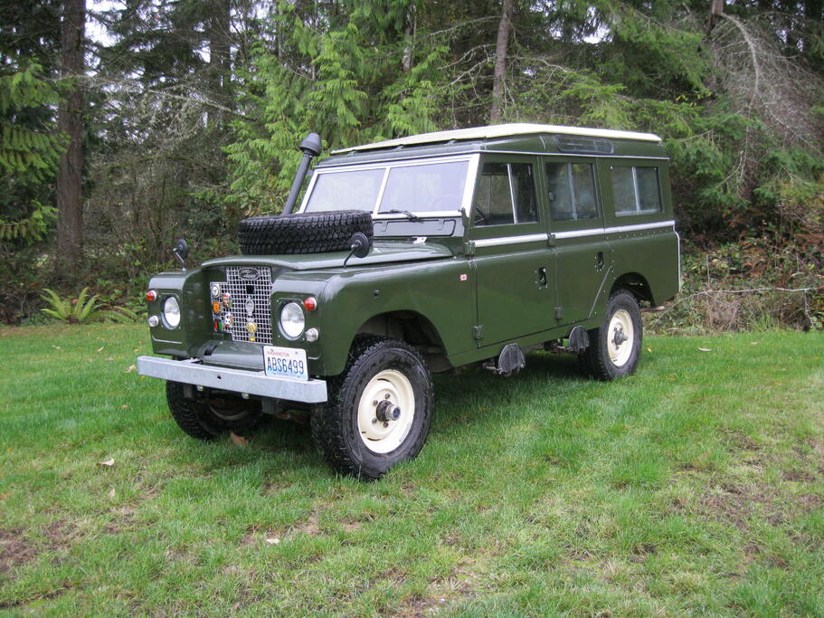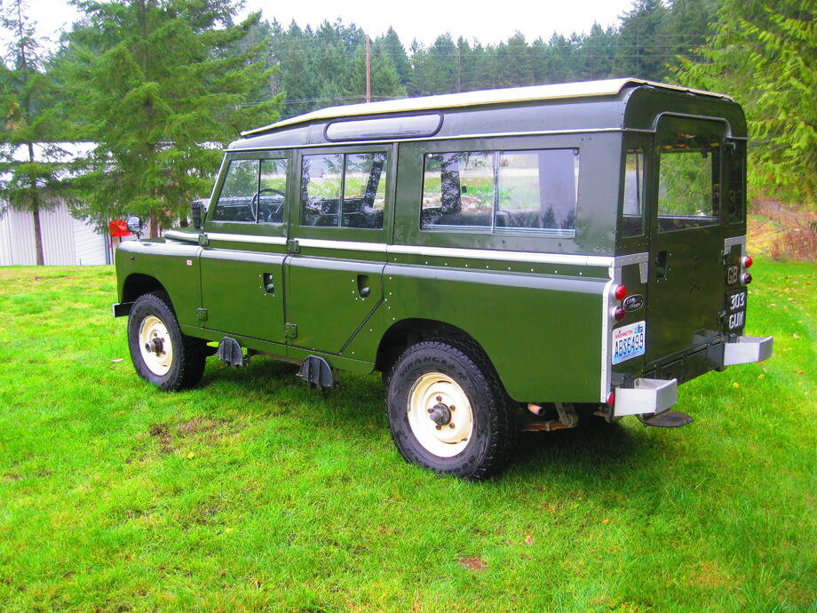 1971 Land-Rover Long DeLuxe Safari Station Wagon.12-passenger model. 14,000 documented miles since new. Quite possibly the most exceptional 109 available anywhere today. Extensively accessorized with recently-fitted equipment, all professionally installed by the winner of 60 international restoration prizes.