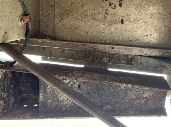 - Frame has the typical surface corrosion in places (not structural, no holes, just not all painted smooth and pretty). No areas look to have been cut, welded, worked on or replaced, etc. The frame, which could always be prepped and painted if desired, is solid and original.